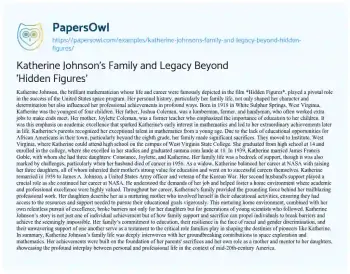 Katherine Johnson's Family and Legacy Beyond 'Hidden Figures'. (2024, Apr 29). Retrieved from https://hub.papersowl.com/examples/katherine-johnsons-family-and-legacy-beyond-hidden-figures/