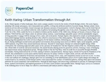 Keith Haring: Urban Transformation through Art. (2024, Mar 18). Retrieved from https://hub.papersowl.com/examples/keith-haring-urban-transformation-through-art/