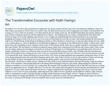 The Transformative Encounter with Keith Haring’s Art. (2020, Jan 27). Retrieved from https://hub.papersowl.com/examples/keith-haring-was-an-avid-diet-coke/