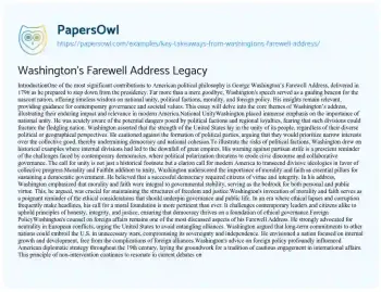 Washington's Farewell Address Legacy. (2024, Jul 06). Retrieved from https://hub.papersowl.com/examples/key-takeaways-from-washingtons-farewell-address/