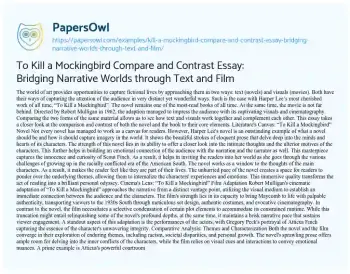 To Kill a Mockingbird Compare and Contrast Essay: Bridging Narrative Worlds through Text and Film