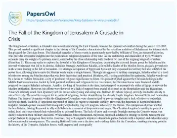 The Fall of the Kingdom of Jerusalem: A Crusade in Crisis. (2021, Apr 19). Retrieved from https://hub.papersowl.com/examples/king-baldwin-iv-versus-saladin/