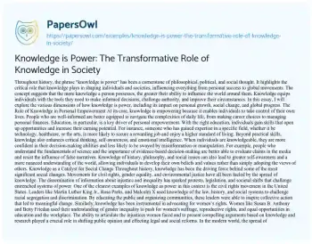 Knowledge is Power: The Transformative Role of Knowledge in Society