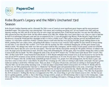 Kobe Bryant's Legacy and the NBA's Uncharted 73rd Season. (2023, Aug 20). Retrieved from https://hub.papersowl.com/examples/kobe-bryants-legacy-and-the-nbas-uncharted-73rd-season/