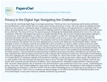 Privacy in the Digital Age: Navigating the Challenges. (2021, Jun 17). Retrieved from https://hub.papersowl.com/examples/lack-of-privacy-in-1984-essay/