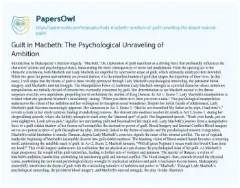 Guilt in Macbeth: The Psychological Unraveling of Ambition. (2023, Aug 20). Retrieved from https://hub.papersowl.com/examples/lady-macbeth-symbols-of-guilt-unveiling-the-blood-stained-path/