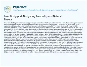 Lake Bridgeport: Navigating Tranquility and Natural Beauty. (2024, Mar 02). Retrieved from https://hub.papersowl.com/examples/lake-bridgeport-navigating-tranquility-and-natural-beauty/