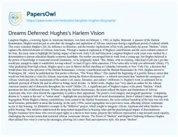 Dreams Deferred: Hughes's Harlem Vision. (2021, Apr 08). Retrieved from https://hub.papersowl.com/examples/langston-hughes-biography/