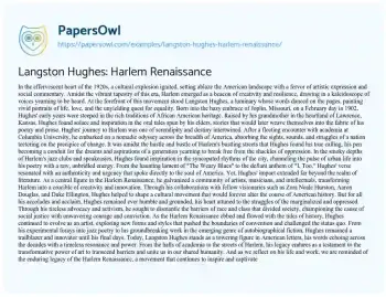Langston Hughes: Harlem Renaissance. (2024, Apr 29). Retrieved from https://hub.papersowl.com/examples/langston-hughes-harlem-renaissance/
