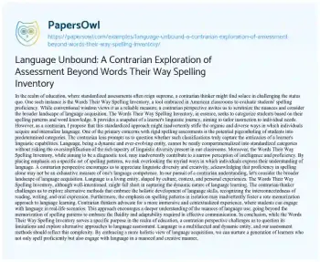 Language Unbound: A Contrarian Exploration of Assessment Beyond Words Their Way Spelling Inventory. (2023, Dec 22). Retrieved from https://hub.papersowl.com/examples/language-unbound-a-contrarian-exploration-of-assessment-beyond-words-their-way-spelling-inventory/