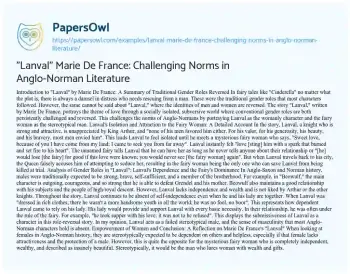 "Lanval" Marie De France: Challenging Norms in Anglo-Norman Literature. (2023, Aug 04). Retrieved from https://hub.papersowl.com/examples/lanval-marie-de-france-challenging-norms-in-anglo-norman-literature/