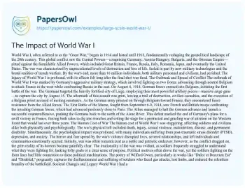 The Impact of World War I. (2022, Apr 15). Retrieved from https://hub.papersowl.com/examples/large-scale-world-war-1/