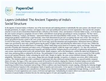 Layers Unfolded: The Ancient Tapestry of India's Social Structure. (2024, May 28). Retrieved from https://hub.papersowl.com/examples/layers-unfolded-the-ancient-tapestry-of-indias-social-structure/