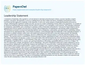 Leadership Statement. (2024, May 01). Retrieved from https://hub.papersowl.com/examples/leadership-statement/