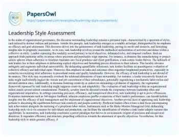 Leadership Style Assessment. (2024, May 01). Retrieved from https://hub.papersowl.com/examples/leadership-style-assessment/