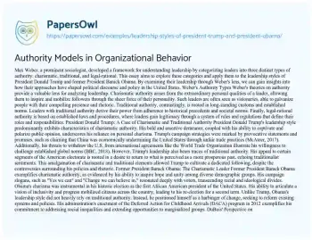 Authority Models in Organizational Behavior. (2021, Oct 16). Retrieved from https://hub.papersowl.com/examples/leadership-styles-of-president-trump-and-president-obama/