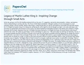 Legacy of Martin Luther King Jr.: Inspiring Change through Small Acts. (2023, Jun 20). Retrieved from https://hub.papersowl.com/examples/legacy-of-martin-luther-king-jr-inspiring-change-through-small-acts/