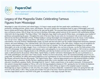 Legacy of the Magnolia State: Celebrating Famous Figures from Mississippi. (2023, Dec 01). Retrieved from https://hub.papersowl.com/examples/legacy-of-the-magnolia-state-celebrating-famous-figures-from-mississippi/