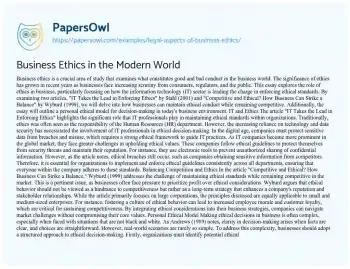 Business Ethics in the Modern World. (2021, Nov 22). Retrieved from https://hub.papersowl.com/examples/legal-aspects-of-business-ethics/