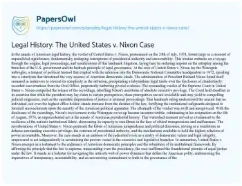 Legal History: The United States v. Nixon Case. (2024, Mar 18). Retrieved from https://hub.papersowl.com/examples/legal-history-the-united-states-v-nixon-case/