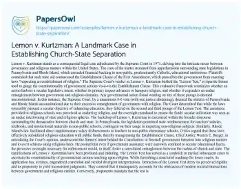 Lemon v. Kurtzman: A Landmark Case in Establishing Church-State Separation. (2024, May 28). Retrieved from https://hub.papersowl.com/examples/lemon-v-kurtzman-a-landmark-case-in-establishing-church-state-separation/