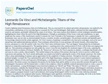 Leonardo Da Vinci and Michelangelo: Titans of the High Renaissance. (2020, Feb 16). Retrieved from https://hub.papersowl.com/examples/leonardo-da-vinci-and-michelangelo/