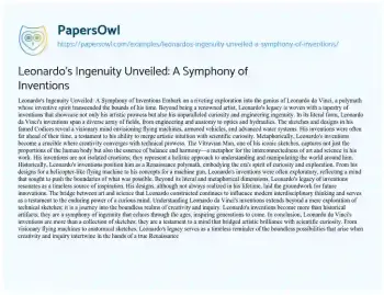 Leonardo's Ingenuity Unveiled: A Symphony of Inventions. (2024, Feb 01). Retrieved from https://hub.papersowl.com/examples/leonardos-ingenuity-unveiled-a-symphony-of-inventions/