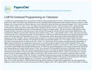 LGBTQ-Centered Programming on Television. (2019, Nov 21). Retrieved from https://hub.papersowl.com/examples/lgbtq-centered-programming-on-television/