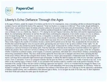 Liberty's Echo: Defiance Through the Ages. (2024, Mar 25). Retrieved from https://hub.papersowl.com/examples/libertys-echo-defiance-through-the-ages/