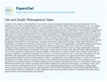 Life and Death: Philosophical Views. (2024, Dec 27). Retrieved from https://hub.papersowl.com/examples/life-and-death-philosophical-views/
