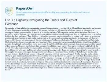 Life is a Highway: Navigating the Twists and Turns of Existence. (2024, Jan 09). Retrieved from https://hub.papersowl.com/examples/life-is-a-highway-navigating-the-twists-and-turns-of-existence/