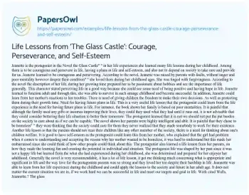 Life Lessons from 'The Glass Castle': Courage, Perseverance, and Self-Esteem. (2020, Mar 15). Retrieved from https://hub.papersowl.com/examples/life-lessons-from-the-glass-castle-courage-perseverance-and-self-esteem/