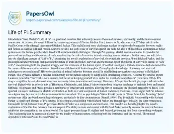 Life of Pi: Summary. (2024, Dec 27). Retrieved from https://hub.papersowl.com/examples/life-of-pi-summary/