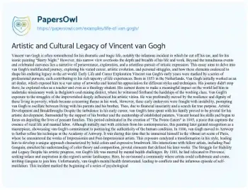 Artistic and Cultural Legacy of Vincent van Gogh. (2022, Nov 17). Retrieved from https://hub.papersowl.com/examples/life-of-van-gogh/