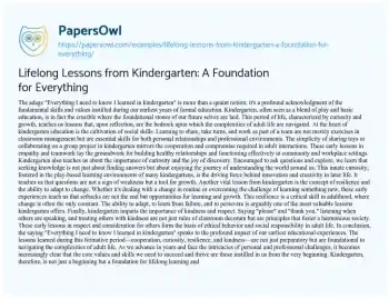 Lifelong Lessons from Kindergarten: A Foundation for Everything. (2024, Mar 01). Retrieved from https://hub.papersowl.com/examples/lifelong-lessons-from-kindergarten-a-foundation-for-everything/