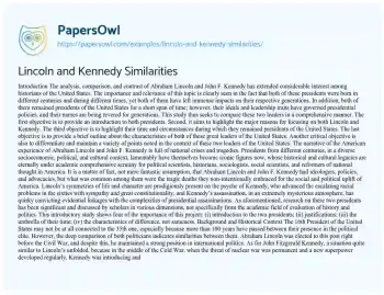 The analysis, comparison, and contrast of Abraham Lincoln and John F. Kennedy has extended considerable interest among historians of the United States. The importance and relevance of this topic is clearly seen in the fact that both of these presidents were born in different centuries and during different times, yet both of them have left immense impacts on their respective generations. In addition, both of them remained presidents of the United States for a short span of time; however, their ideals and leadership traits have governed presidential policies, and their names are being revered for generations.
