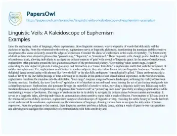 Linguistic Veils: A Kaleidoscope of Euphemism Examples. (2024, Feb 01). Retrieved from https://hub.papersowl.com/examples/linguistic-veils-a-kaleidoscope-of-euphemism-examples/