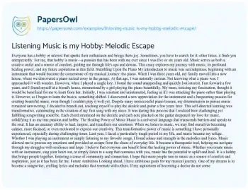 Listening Music is my Hobby: Melodic Escape. (2023, Jun 18). Retrieved from https://hub.papersowl.com/examples/listening-music-is-my-hobby-melodic-escape/