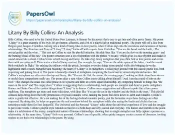 Litany By Billy Collins: An Analysis. (2024, Sep 17). Retrieved from https://hub.papersowl.com/examples/litany-by-billy-collins-an-analysis/