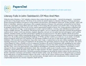 Literary Foils In John Steinbeck’s Of Mice And Men