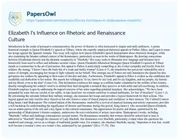 Elizabeth I’s Influence on Rhetoric and Renaissance Culture. (2019, Oct 10). Retrieved from https://hub.papersowl.com/examples/literary-techniques-in-shakespeares-macbeth/