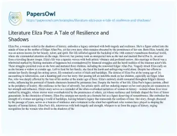 Literature Eliza Poe: A Tale of Resilience and Shadows. (2023, Dec 28). Retrieved from https://hub.papersowl.com/examples/literature-eliza-poe-a-tale-of-resilience-and-shadows/