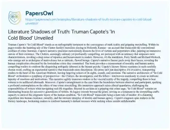 Literature Shadows of Truth: Truman Capote's 'In Cold Blood' Unveiled. (2023, Dec 28). Retrieved from https://hub.papersowl.com/examples/literature-shadows-of-truth-truman-capotes-in-cold-blood-unveiled/