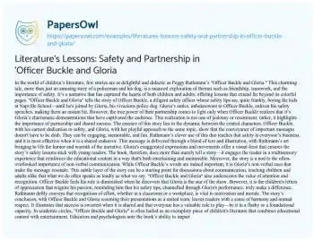 Literature's Lessons: Safety and Partnership in 'Officer Buckle and Gloria. (2023, Nov 17). Retrieved from https://hub.papersowl.com/examples/literatures-lessons-safety-and-partnership-in-officer-buckle-and-gloria/