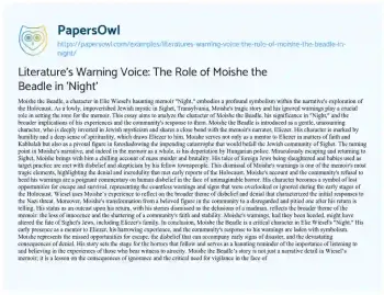 Literature's Warning Voice: The Role of Moishe the Beadle in 'Night'. (2023, Nov 24). Retrieved from https://hub.papersowl.com/examples/literatures-warning-voice-the-role-of-moishe-the-beadle-in-night/