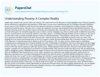Understanding Poverty: A Complex Reality. (2021, May 09). Retrieved from https://hub.papersowl.com/examples/living-in-poverty-and-being-rich/
