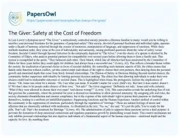 The Giver: Safety at the Cost of Freedom. (2019, Mar 01). Retrieved from https://hub.papersowl.com/examples/lois-lowrys-the-giver/