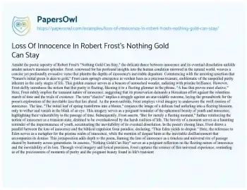 Loss Of Innocence In Robert Frost's Nothing Gold Can Stay. (2024, Apr 14). Retrieved from https://hub.papersowl.com/examples/loss-of-innocence-in-robert-frosts-nothing-gold-can-stay/
