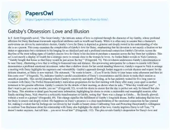 Gatsby’s Obsession: Love and Illusion
