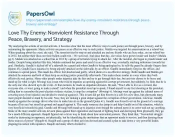 Love Thy Enemy: Nonviolent Resistance Through Peace, Bravery, and Strategy. (2021, Jul 05). Retrieved from https://hub.papersowl.com/examples/love-thy-enemy-nonviolent-resistance-through-peace-bravery-and-strategy/